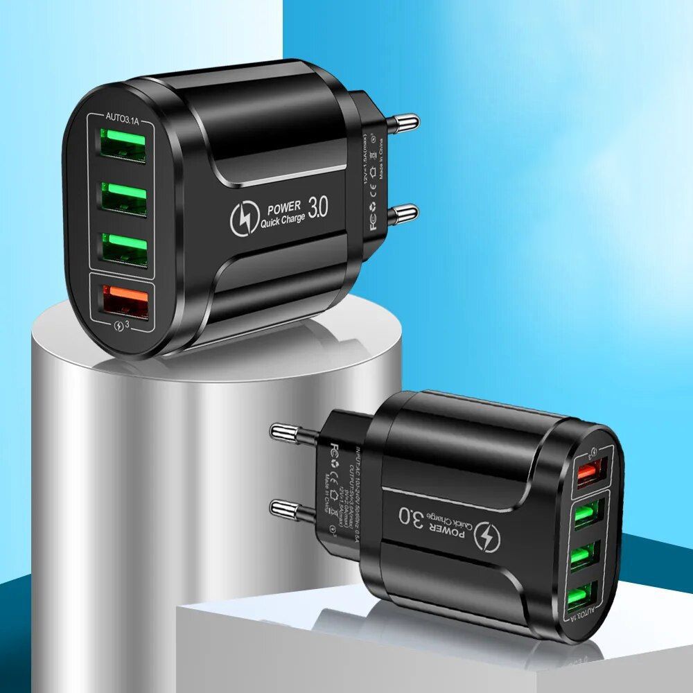 45W Multi-Port USB Fast Charger with QC 3.0 - Suitable for iPhone, Samsung, Xiaomi & More