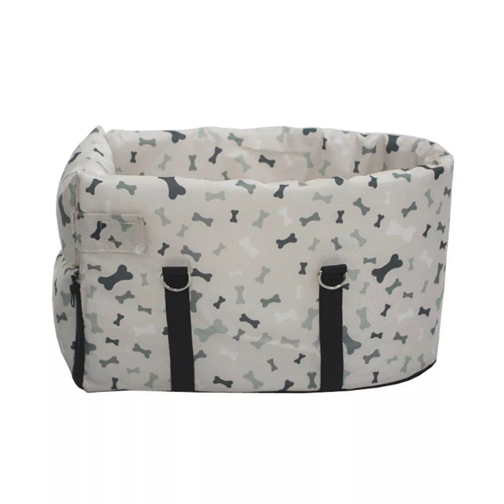 Nuestro asiento de seguridad para mascotas cuenta con correas ajustables que se adaptan fácilmente a una variedad de modelos de automóviles, lo que garantiza un ajuste seguro en la mayoría de los apoyabrazos de los automóviles. El material de poliéster de alta calidad es duradero y transpirable, adecuado para uso durante todo el año. Los puntos de goma antideslizantes debajo garantizan que el asiento elevado permanezca en su lugar, proporcionando un lugar estable y seguro para que su mascota disfrute del viaje. Con su estampado elegante y estilo moderno, es una adición elegante al interior de su automóvil mientras mantiene segura a su mascota.