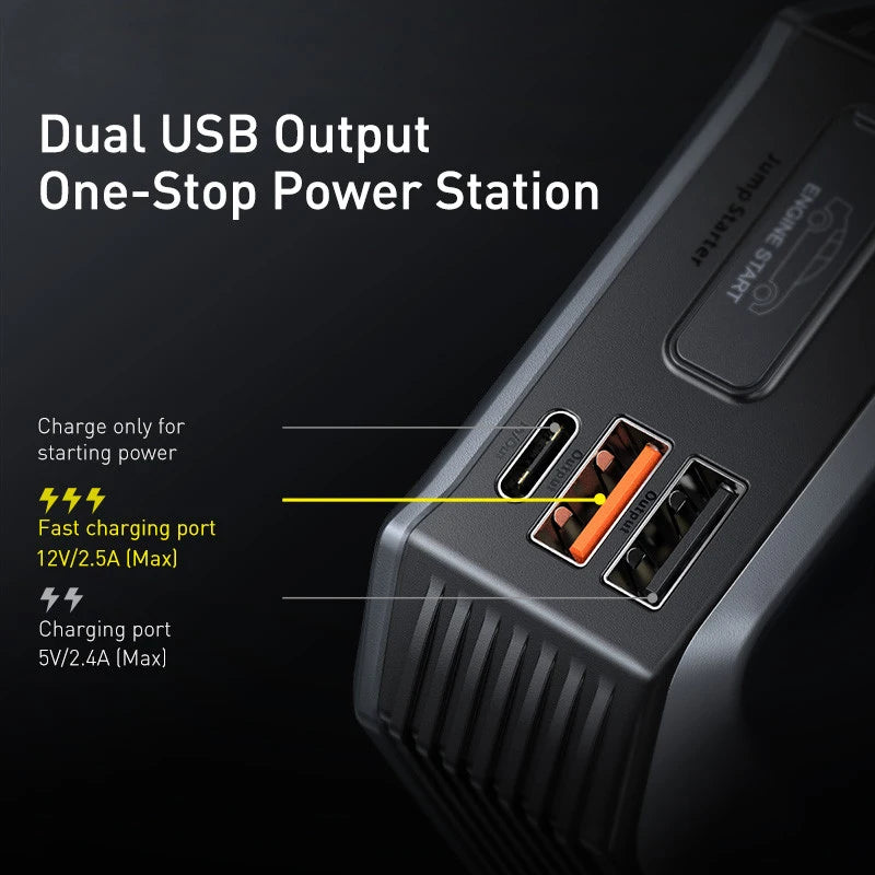 • Carga rápida bidireccional: recargue rápidamente el arrancador y cargue sus dispositivos simultáneamente, lo que lo hace conveniente para viajar.