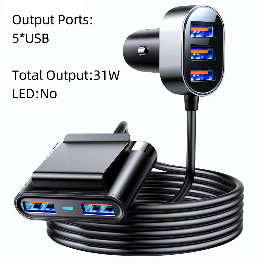 Manténgase conectado mientras viaja con el **cargador para automóvil de 5 puertos y 78 W**, diseñado para mantener todos sus dispositivos cargados durante sus viajes por carretera. Ya sea que use teléfonos inteligentes, tabletas, cámaras u otros dispositivos alimentados por USB, este cargador para automóvil es un artículo imprescindible para familias, viajeros y profesionales. Con un diseño elegante y compatibilidad universal, es perfecto para cualquier automóvil, desde sedanes hasta SUV y camionetas. Equipado con funciones de seguridad avanzadas y múltiples puertos USB, nunca tendrá que preocuparse por la descarga de la batería mientras viaja.