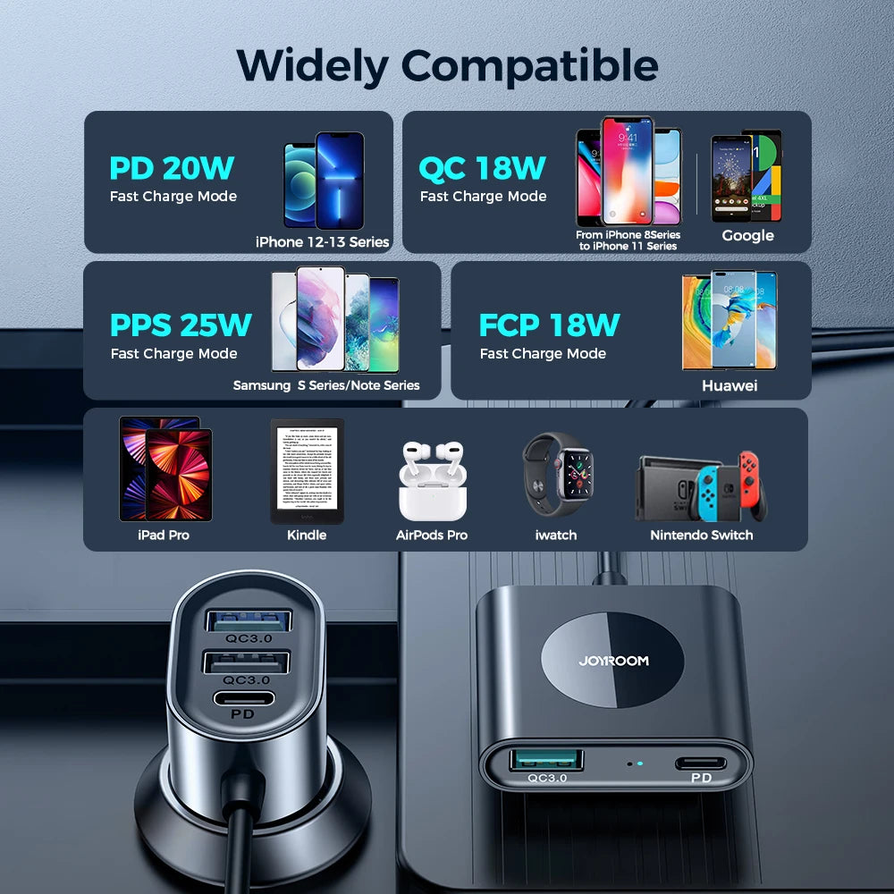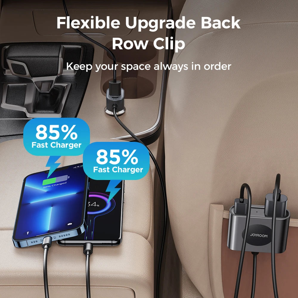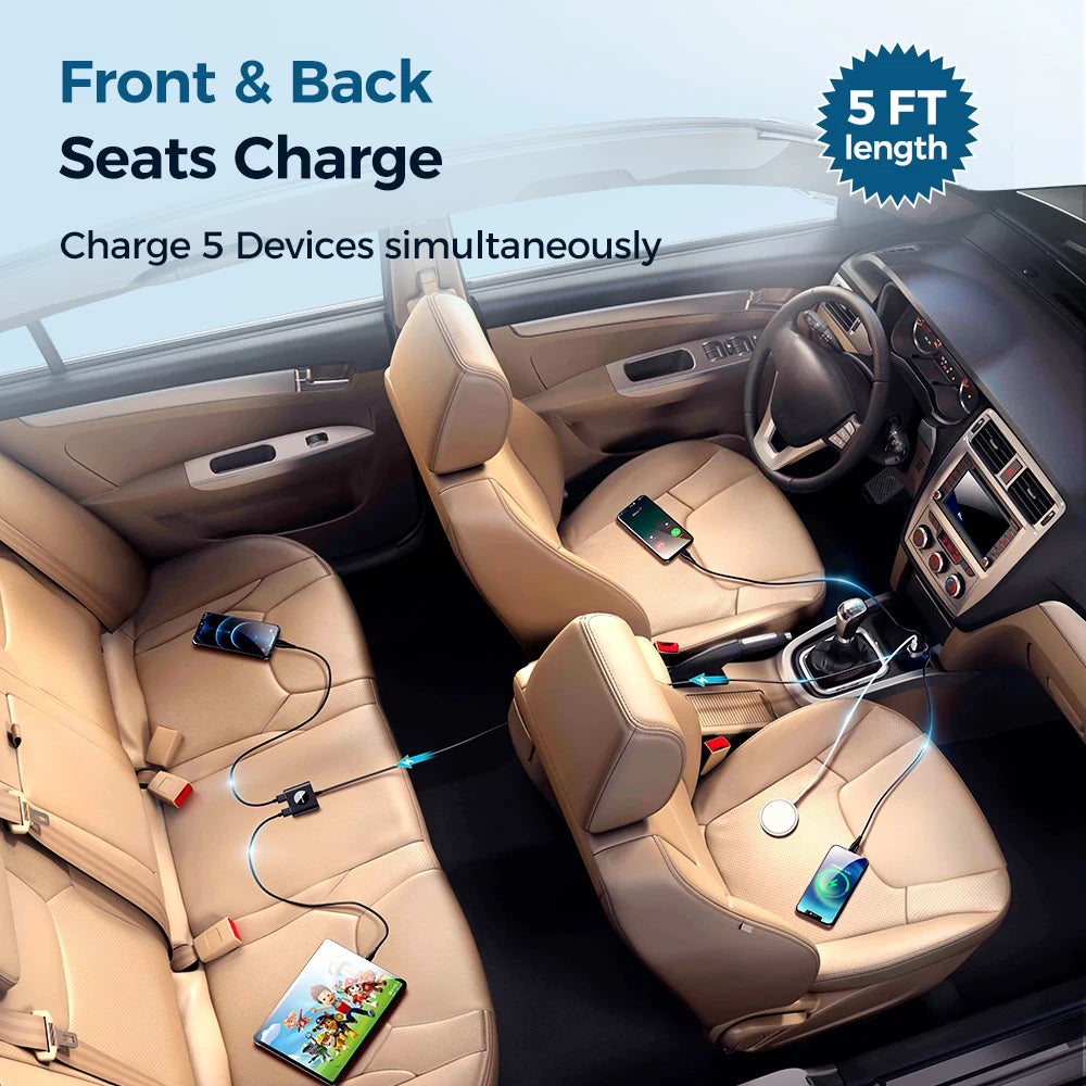 Este cargador para automóvil es perfecto para viajes largos por carretera, desplazamientos diarios o cuando viaja con varios pasajeros que necesitan mantener sus dispositivos cargados. Es especialmente útil para familias con niños, ya que permite que los pasajeros del asiento trasero carguen sus teléfonos o tabletas mientras se mantienen conectados y entretenidos durante el viaje.
