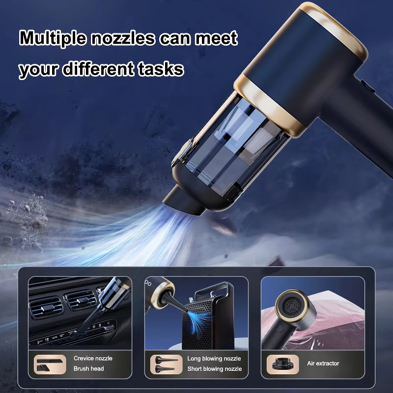 El diseño liviano de la aspiradora garantiza que la limpieza ya no sea una tarea engorrosa y, con su tamaño portátil, puede llevarla a cualquier parte, desde su sala de estar hasta su automóvil. Su batería recargable de larga duración garantiza sesiones de limpieza ininterrumpidas, mientras que la funcionalidad inalámbrica le brinda la libertad de limpiar sin estar atado a un enchufe. Perfecta para hogares con mucha actividad, dueños de mascotas y entusiastas de los automóviles, esta aspiradora está diseñada para brindar versatilidad y facilidad.