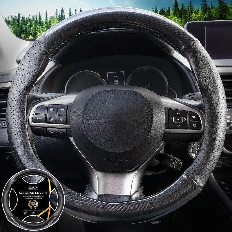 Funda universal para volante de coche de 37 a 38 cm: piel sintética transpirable y antideslizante y fibra de carbono